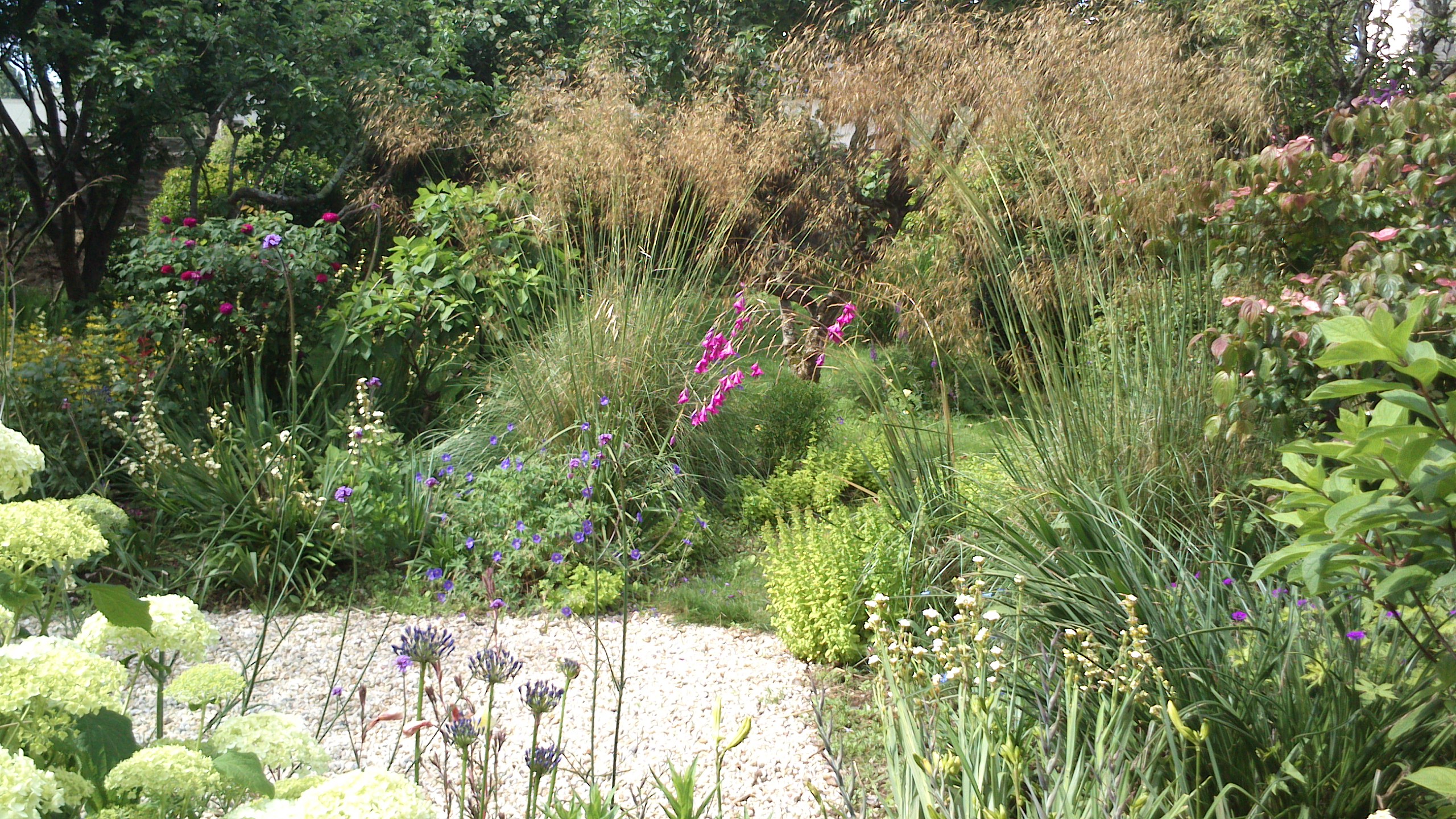 ☀️ 2. Jardin gravillonné et floraison estivale