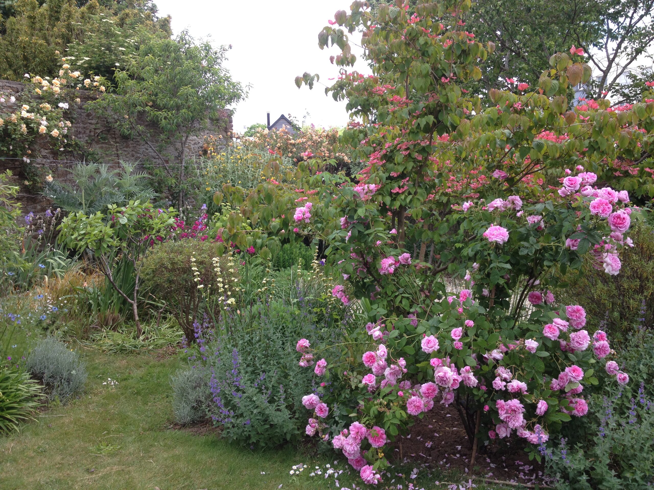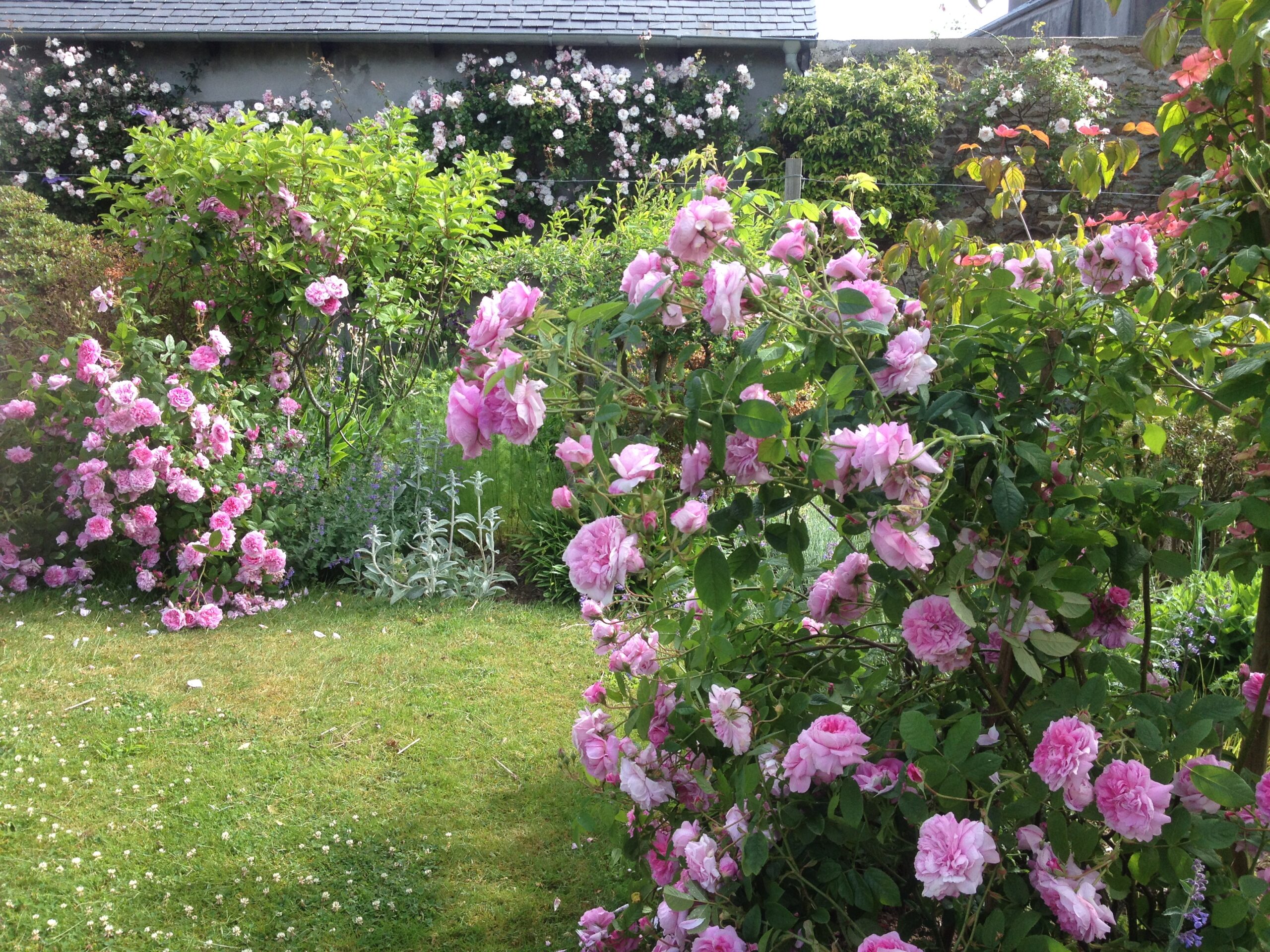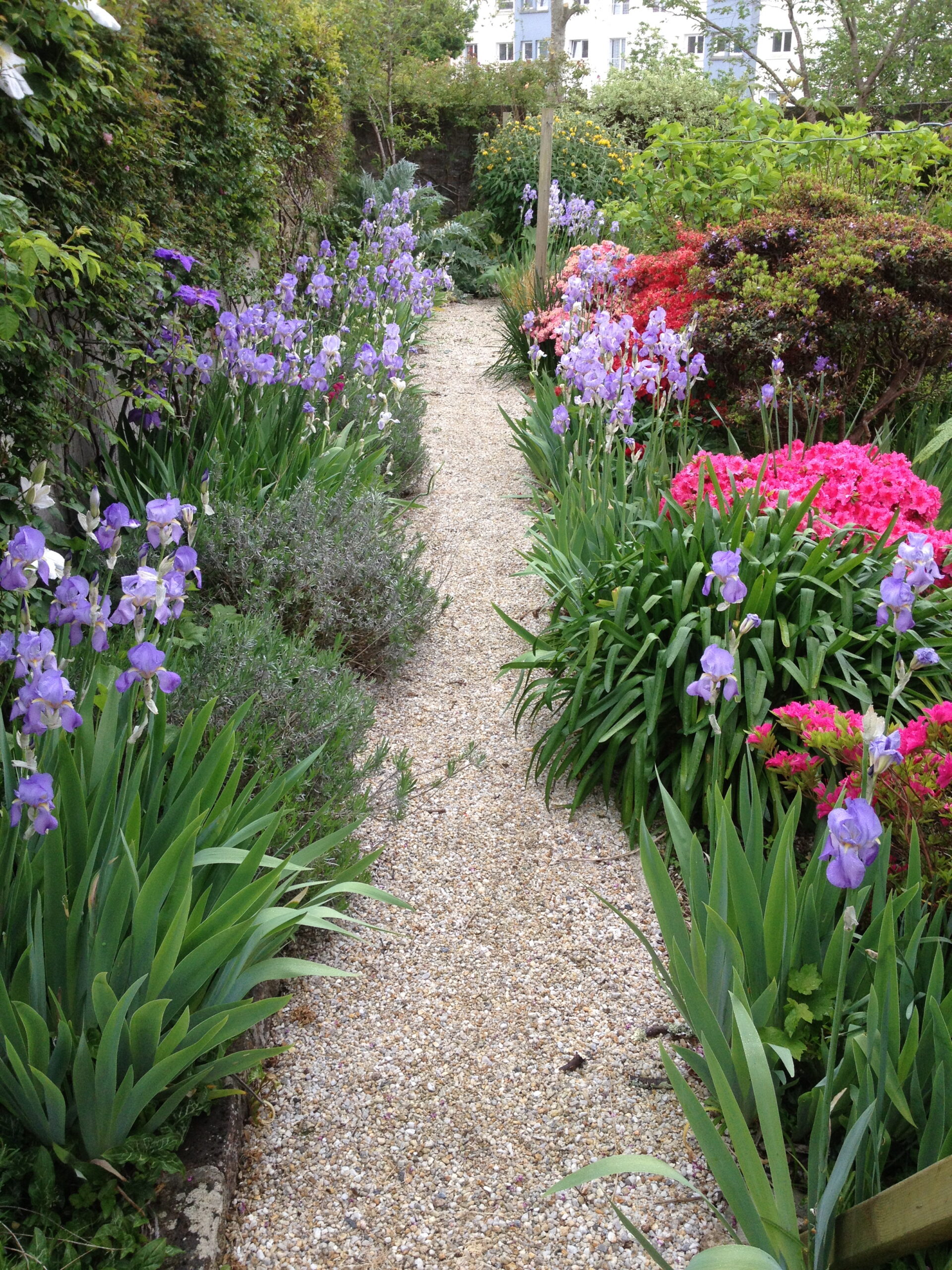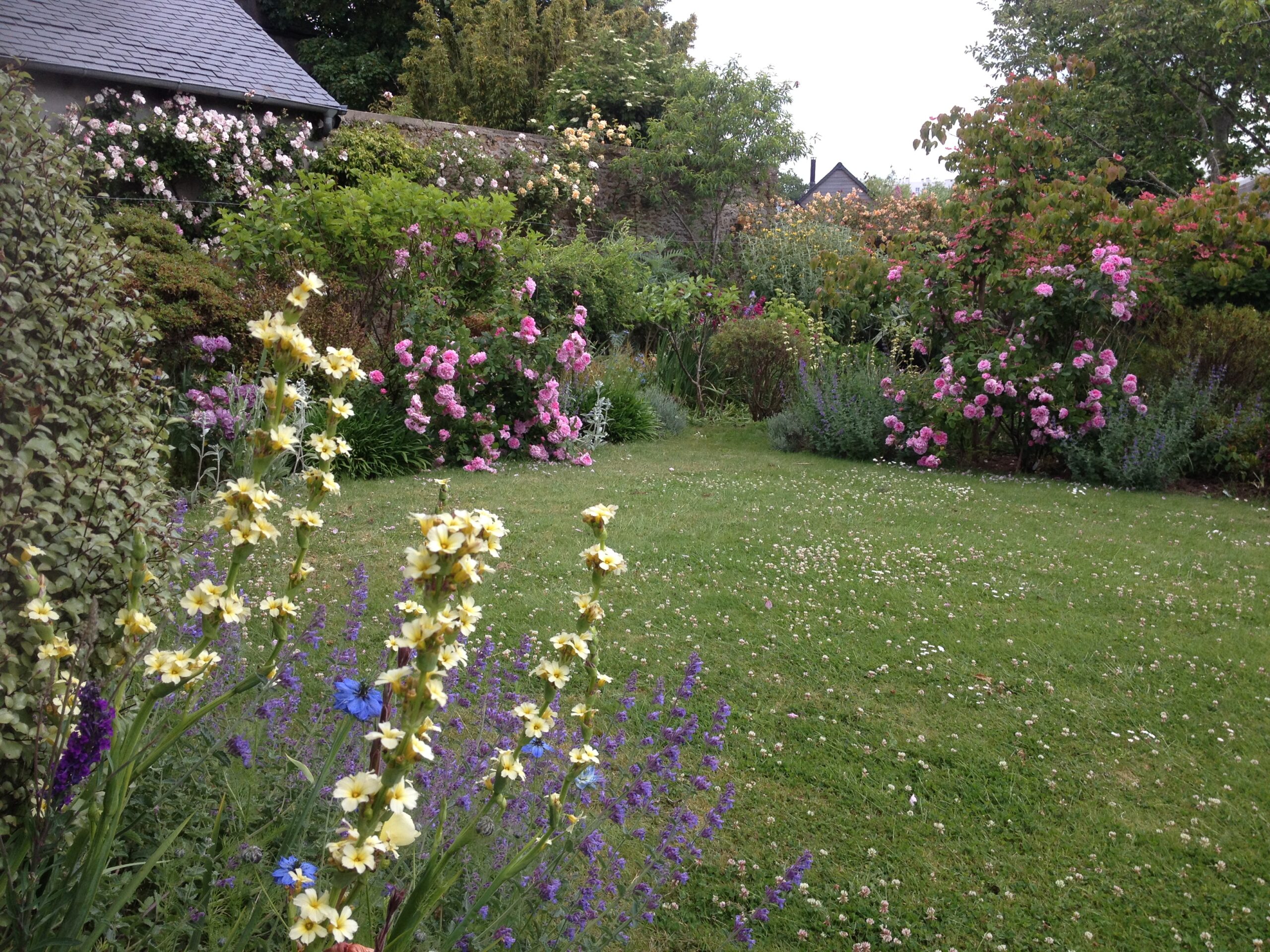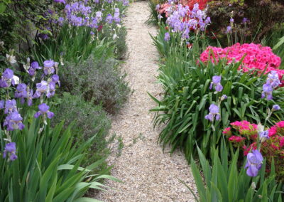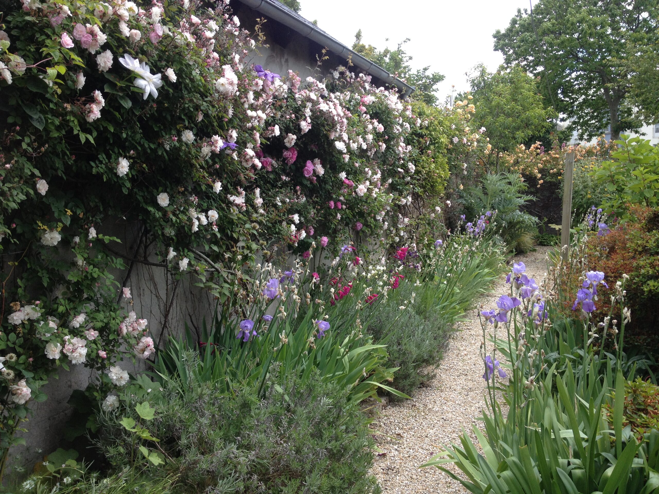 🌿 4. L’allée d’iris et les rosiers grimpants